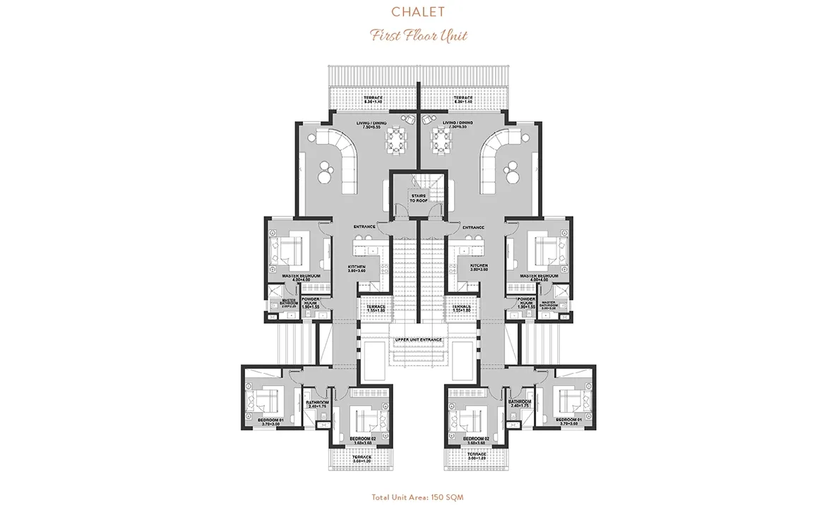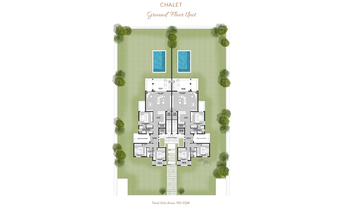 Nestled amidst breathtaking vistas, each three-bedroom chalet offers 150m² of exquisite living space. Each chalet’s ground floor features a gracious living and dining area leading onto a private garden, providing a peaceful oasis. The first floor also hosts a spectacular rooftop deck and private plunge pool with uninterrupted views of the mountains and the mesmerising Red Sea.