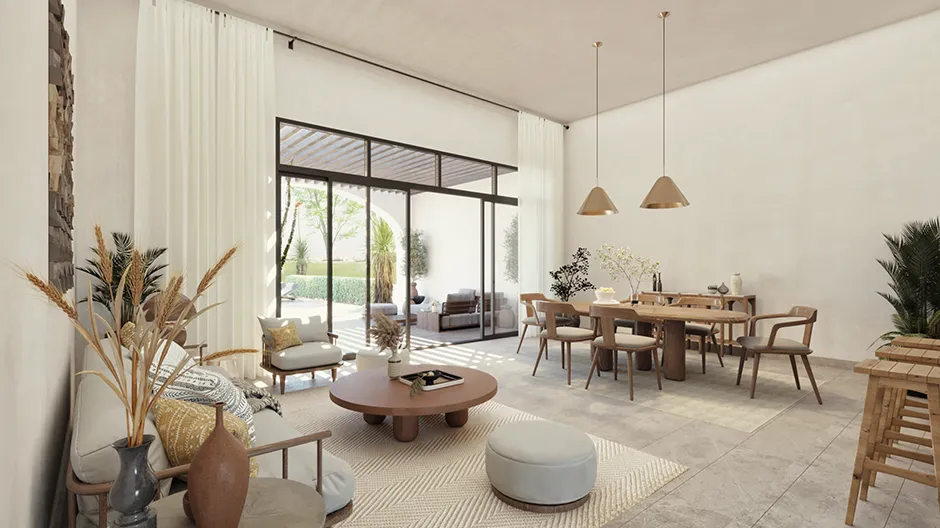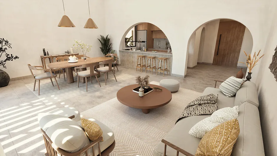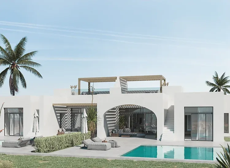Nestled amidst panoramic views of Ancient Sands Golf Course, The Twin Villas comprise three generously appointed bedrooms, a spacious walk-in dressing room and a dedicated nanny’s room. Spread over a single floor and covering 158m², these exclusive residences, with open-plan living layouts, seamlessly merge indoor and outdoor spaces, creating an atmosphere of unrestricted tranquillity.
