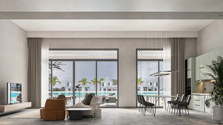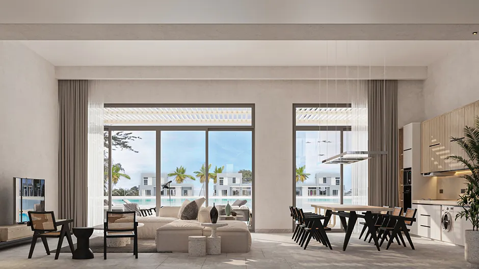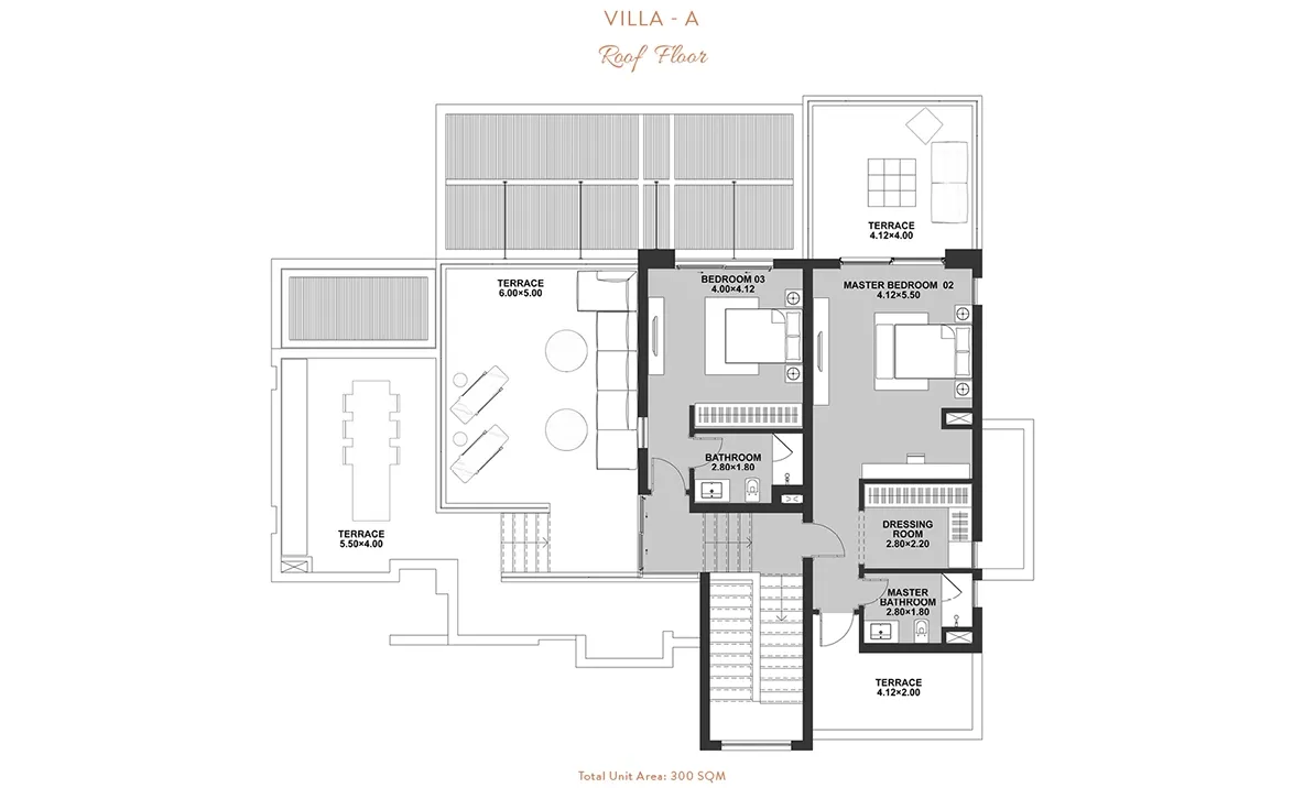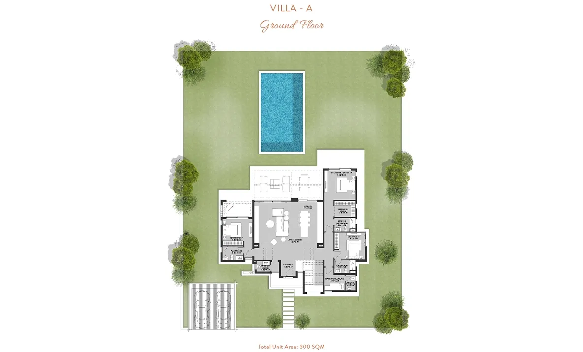 Experience luxury in this spacious two-storey, 300m² five-bedroom villa. Its kitchen seamlessly flows into expansive dining and living areas. Upstairs, vast lounges and sun decks provide spectacular views. All bedrooms, including master suites on both levels, overlook the 30m² pool. The villa includes a back garden with an open deck extending from the living area, ensuring privacy and a serene atmosphere.