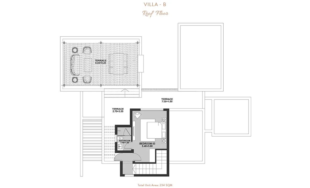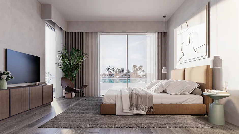Discover elegant living with this beautiful two-storey 234m² four-bedroom villa. Its open-plan kitchen seamlessly flows into inviting dining and living areas. The master bedroom overlooks the garden and 30m² pool, offering a serene escape. Outside, a luxurious pool area and private outdoor space await. The rooftop deck ensures privacy and showcases breathtaking views of distant mountains and the Red Sea, creating a tranquil haven.