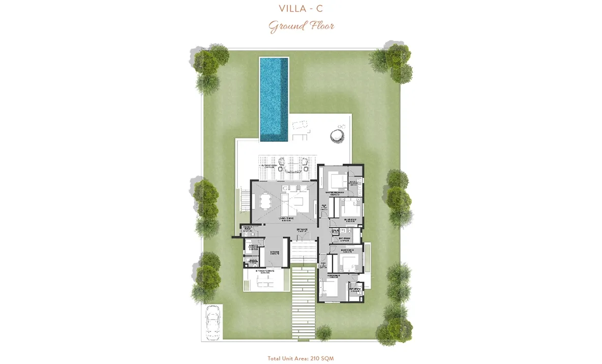 Spanning 210m², this single-story El Gouna villa boasts four generously sized bedrooms. The kitchen opens to a spacious terrace with prime views of Ancient Hill’s central lagoon. The master bedroom provides panoramic views of the Red Sea, golf course, and lagoon. Additional features include an ideal rooftop deck, built-in nanny's room, back garden, and private pool.