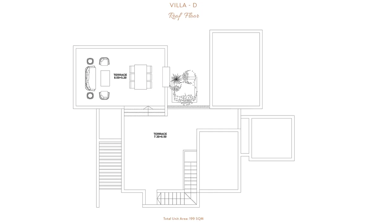 Experience comfort and luxury in this single-story, three-bedroom villa spanning 199m². The wide kitchen seamlessly flows into an open living area, ideal for family gatherings. A perfect sundeck and pool offer relaxation. The villa features a terrace with sweeping views, and upstairs, the master bedroom opens to a wide roof terrace with panoramic views, creating a welcoming and serene atmosphere.