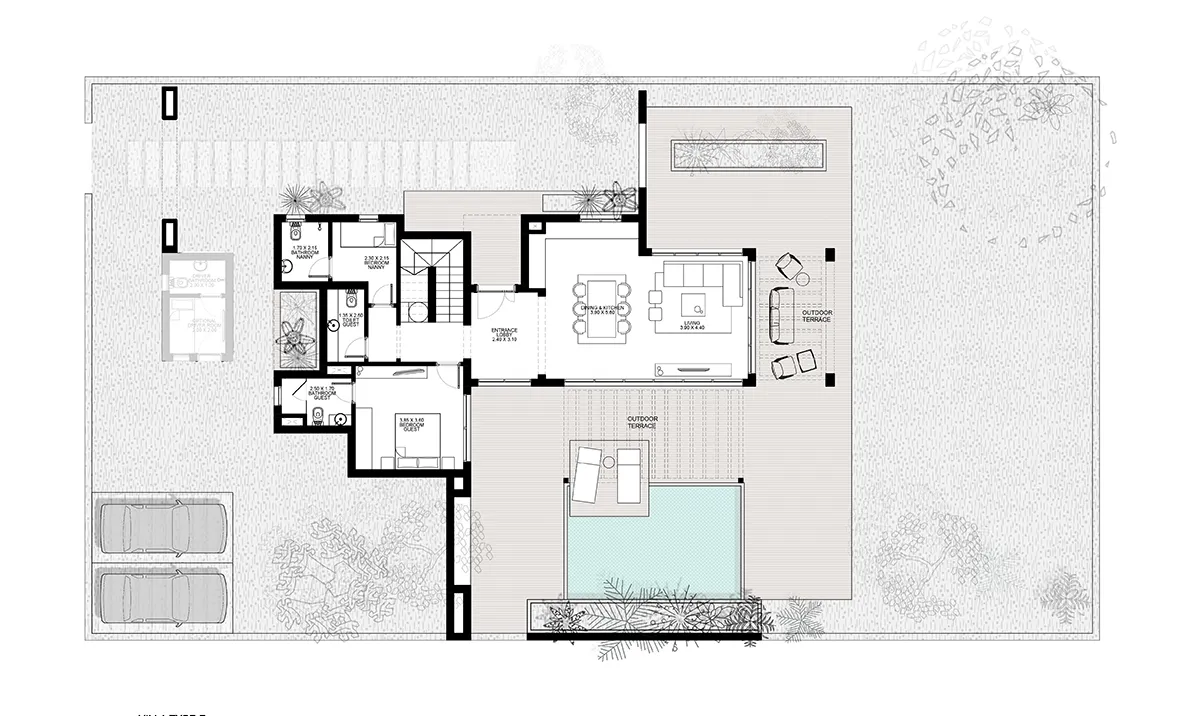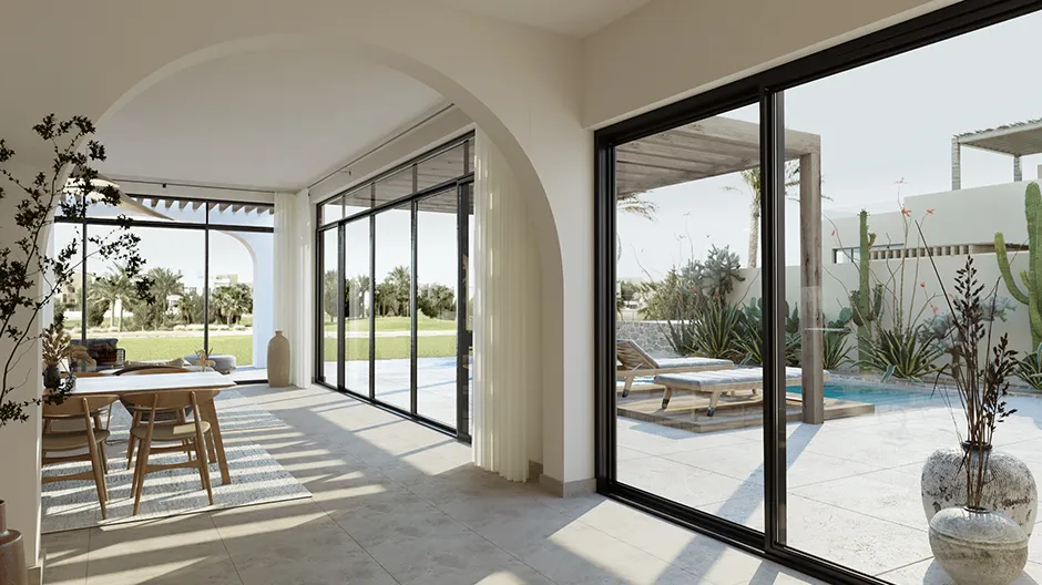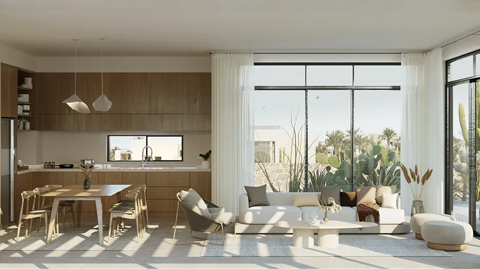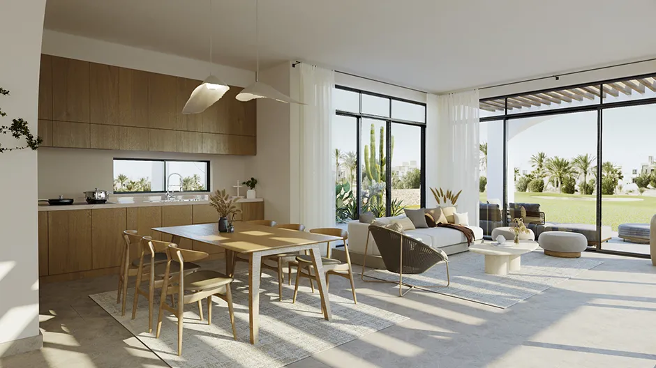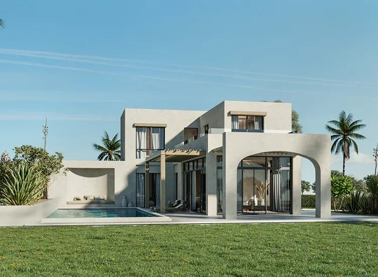 This two-storey, 192m² villa in El Gouna offers breathtaking views over The Ancient Sands Golf Course. This beautiful three-bedroom property is a tranquil oasis with an expansive entrance patio and large living area windows. The villa features a dedicated laundry area, a spacious dressing room, and a nanny’s room. A private swimming pool can be incorporated upon request.