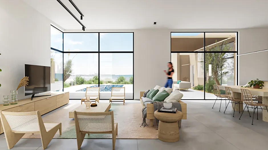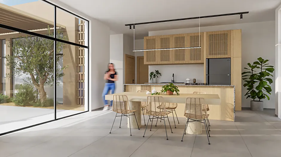 This one-story 190m² villa in El Gouna features four bedrooms and a rooftop deck with panoramic views of the surrounding lagoon, sea, and mountains. The seamlessly connected kitchen, dining, and living spaces, breathtaking views and thoughtful layout throughout the entire property create an inviting atmosphere for family gatherings. Additionally, this villa includes a nanny's room.